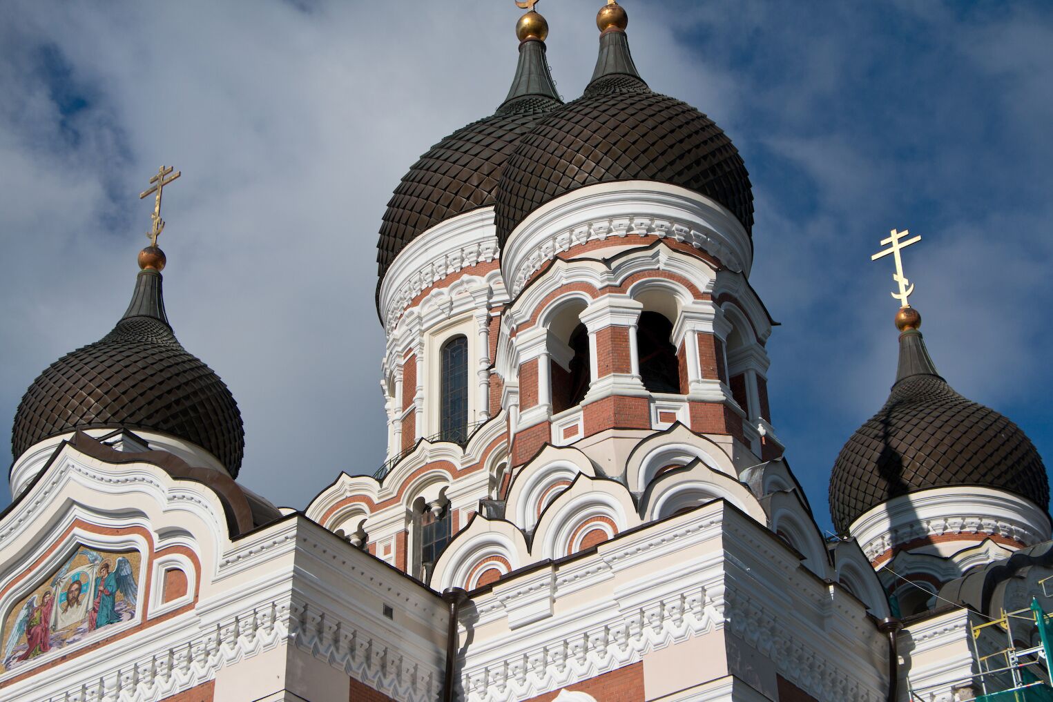 Vol pour Tallinn. À l’arrivée, découverte à pied de la ville haute, où résidaient la noblesse et le clergé à l’époque germanique (ext.) : château de Toompea où siège le Parlement estonien, cathédrale orthodoxe Alexandre-Nevski (xixe s.), cathédrale Sainte-Marie de Tallinn, la plus ancienne église de la capitale. Enfin, vue sur la baie de Tallinn (port, ville basse).